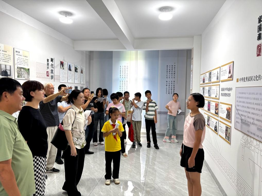 更令人动容的是,故事馆的讲解队伍完全由村民自发组成——从小学生到长者,他们用质朴的乡音传递着这片土地的记忆。这一切离不开村两委的积极组织和长期推动。上午,苏婧娴老师为这支村民讲解团队开展了礼仪、表达与叙事技巧的培训,并逐一进行实践指导。村两委干部全程协调安排,为调研活动提供了坚实保障。