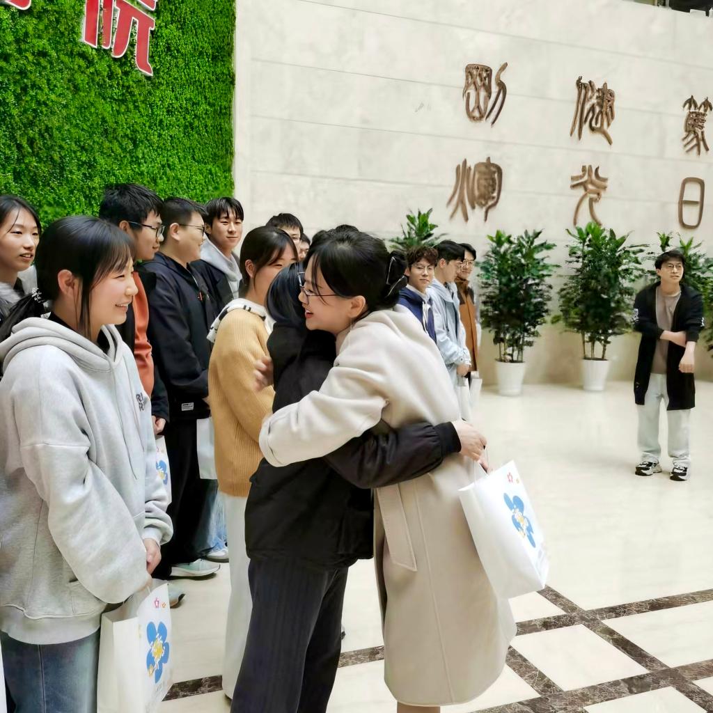 魏懿颖副院长以温和而真诚的方式与同学们交流,在鼓励大家安心备考的同时,笑着表示要用自己“英语专业八级”的拥抱为大家送上祝福。轻松自然的一句话,让现场多了几分笑意与放松,师生之间的距离在交流中悄然拉近,温暖与关怀在不经意间流淌开来,也为紧张的冲刺阶段增添了一份从容与力量。