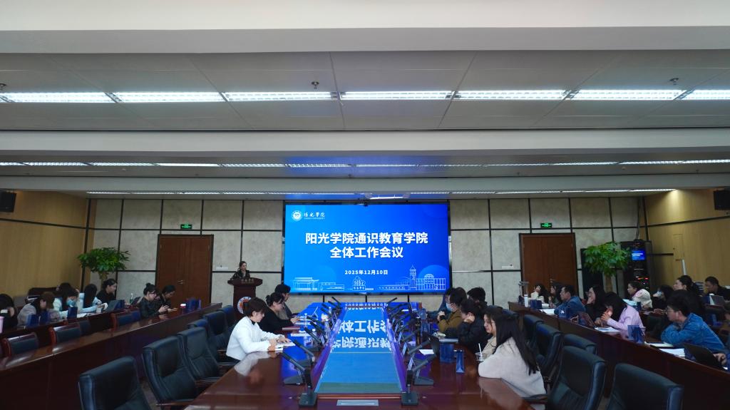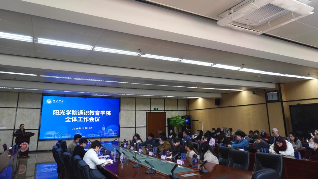 2025年12月10日下午,阳光学院通识教育学院召开全体工作会议,学院全体教职工参会。会议系统总结了2025年度工作成效,并围绕2026年度发展目标、课程建设、学科竞赛、工坊实践、品牌活动、空间资源及师资队伍建设进行了全面计划,为学院通识教育高质量发展规划蓝图。